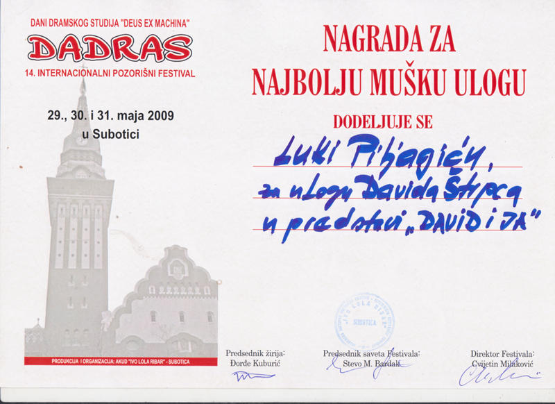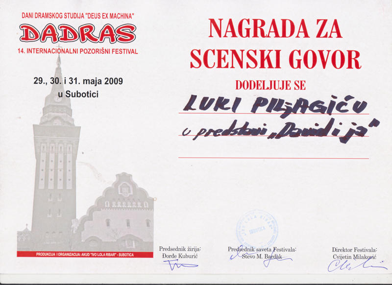 А код Луке Пиљагића, у његовој – у истинском панк ставу – театарској обради Кочићевог „Јазавца пред судом“ („Давид и ја“, 2016) нема тога, већ само јадног понижаваног човека појединца у жрвњу безочне репресије, али и даље човека, и даље појединца. Који, и ако је метафора, и ако је гласноговорник, и ако је тип – ипак и пре свега самим својим присуством и захтевањем права на то присуство опонира мртвилу помирености, манијаштву жељних власти и манијакалном систему оних који власт желе толико да су заборавили на себе саме, чак и не зажаливши због тога.